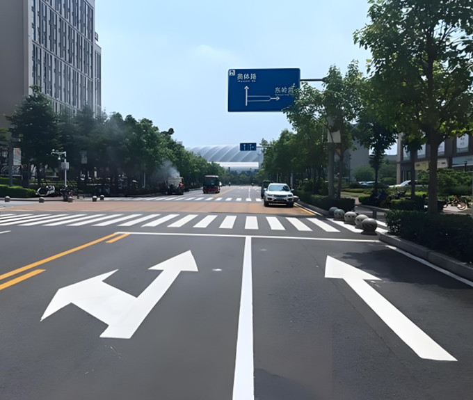 白色实线分隔同向车道 黄色实线分隔对向车道 道路白色虚线 车道分界线 黄实线(禁止超车) 震荡标线 网状线(禁止停车) 人行横道斑马线 道路指示箭头线施工案例